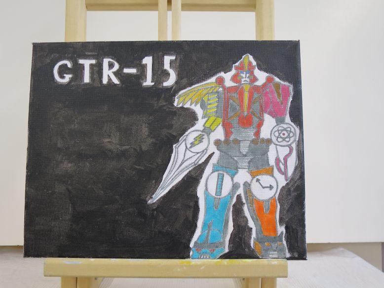 I chose to call the work GTR-15 because it is similar to the name for a weapon, and it fits into the context of the Great War where science played a major role in the creation of assault rifles and other weaponry. The robot is the GTR-15 since it physically embodies the General Theory of Relativity which was born, or rather created in 1915. The background is all back since it illustrates the scientific innovation that was born in a time of darkness and death. Nevertheless, the picture shows how great minds continue to work for the progress of science even when their lives are in danger and humanity is in a chaotic period.