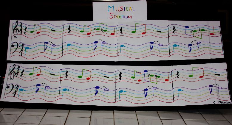 As a musician, I am constantly aware of the sounds around me. This art project is meant to convey how I incorporate science, in this case the idea of light waves and particles, combined with the light spectrum and the idea of light being quantized, and art – a piece of music that is completely of my own making.