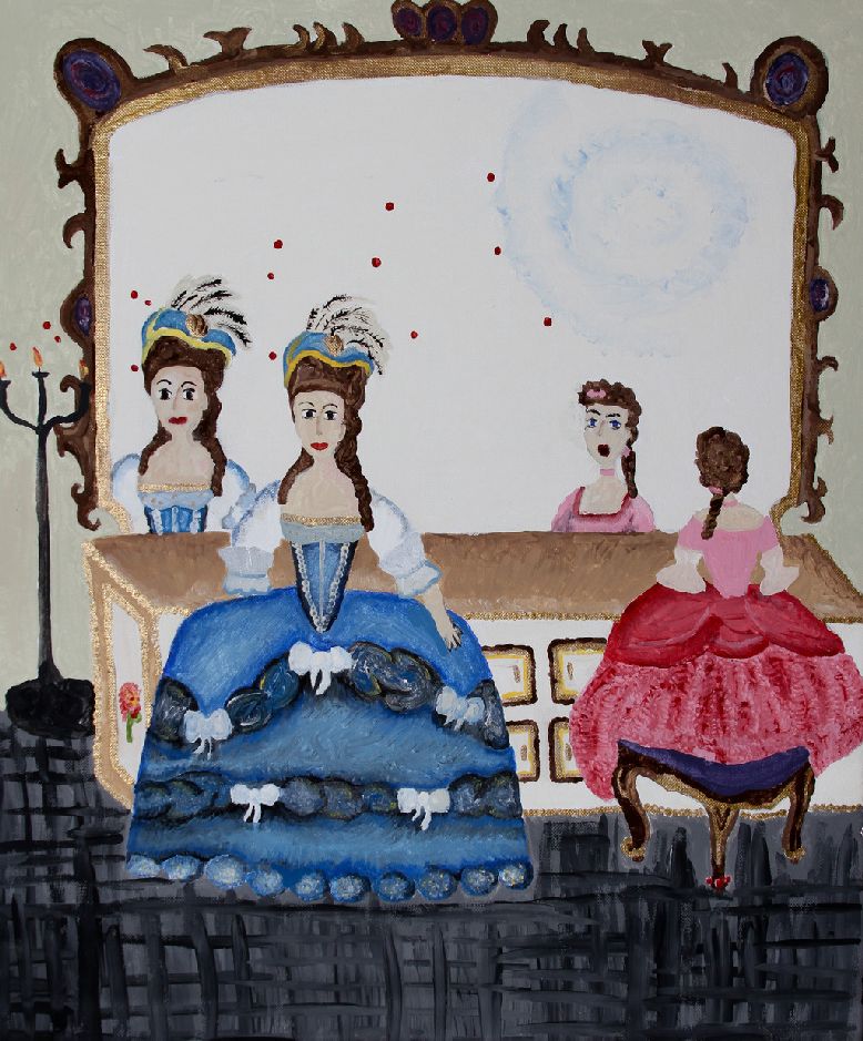 When the art and science project was assigned, I felt curious and interested because for the first time I can express my scientific knowledge by using an artistic approach. This project challenged my capacities in a sense of am I able to incorporate a scientific theory through means of art? My artwork is a painting painted on canvas that expresses two main ideas that link the wave-particle duality of light and Rene Magritte's "Reproduction Forbidden." My work is focused on these two because they both relate indirectly with a so called action of "reflection." The setting of my painting takes place in the early 18th Century when Quantum Theory had not been yet conceived.
