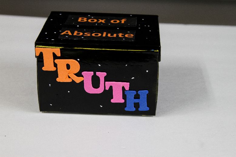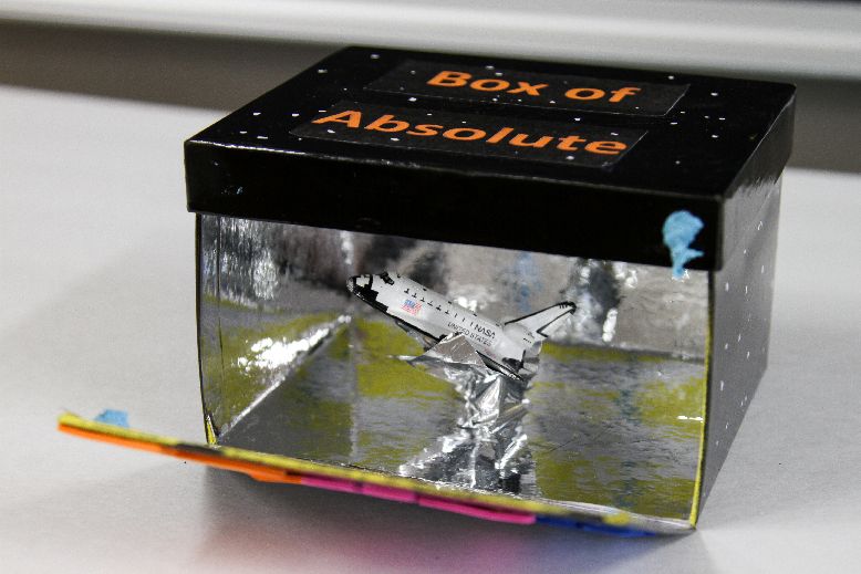 This can be linked to Einstein's special theory of relativity which, as was mentioned before, states that time and space are relative while it is only the speed of light which remains constant. This theory laid the groundwork for quantum views, and suggested that observations about reality are dependent on the observer. Likewise, an observer is needed in order for the spacecraft within my box of Absolute Truth to be viewed, and the viewer can choose which side he/she wishes to observe. If two people are looking inside the box, they may each be seeing two different perspectives of the spacecraft. Even at that, one side will still remain hidden, and so the viewer can search endlessly for an objectified truth, but will only find subjective views of what I attempted to signify as the absolute.