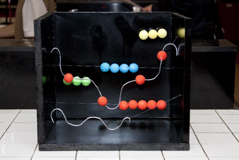 The concept behind my project is that it is supposed to be a closed box and you are not supposed to see what is inside. Since electrons act as waves and particles, we do not know how the electrons will decide to act. This is why in my project we see that there are electrons acting as waves and as particles at the same time. However, I decided to add an abstract idea behind the fact that electrons act as waves and particles. Since they act as both why not be both at the same time? This is just a visual model to help us understand because we cannot know for a fact what the electron is. The whole quantum idea is that our brain cannot see one object as being two things, for example if we see a pen on a table we will interpret it as a pen on a table and not as two objects at the same time. In my project the electrons have colors because they have a wavelength that the human eye will interpret as being a specific color. The wavelengths are blue 475 nm, green 525 nm, yellow 575 nm and red 715 nm.