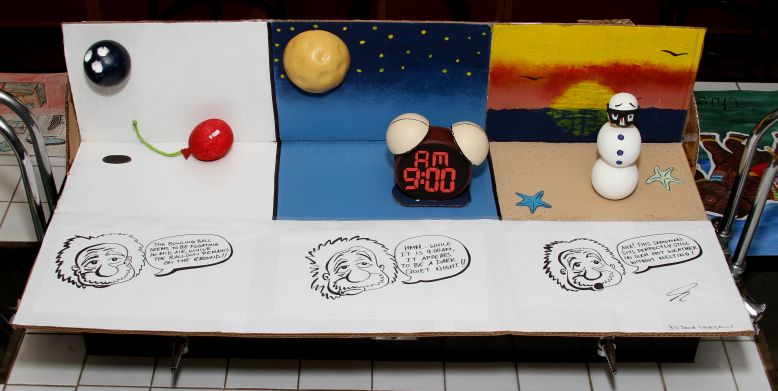 For the last scene, we can see a snowman at the beach on a hot summer day. In all obviousness there’s no way a snowman can be in perfect condition without melting on such a hot day. Not only that but it seems unusual for a snowman to be at a beach, we’d expect him to be at a wintery cold day with lots of snow. Of course this is what we expect since our knowledge stops there, we do cannot think ahead into the quantum world. With those 3 scenes I have showed, it is a representation of not only the parallel universes that exist but possible initial thoughts of scientists. Just as Newton thought time was absolute, some scientist may have thought that a bowling ball would float in mid air whereas a balloon would sit still on the ground. I have tried to show or better yet recreate other possible thoughts of scientists before relativity and quantum, before everything was put into critical analysis.