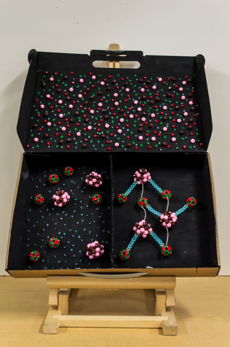 Chemistry’s box conveys the emotion and confusion commonly associated to modern chemistry like quantum theory because of the difficulty for people to conceive ideas of the sort. Since all these concepts are so abstracted and hard to devise, once the Chemistry’s box is opened, you are about to venture into the chemistry world and its complexities.
